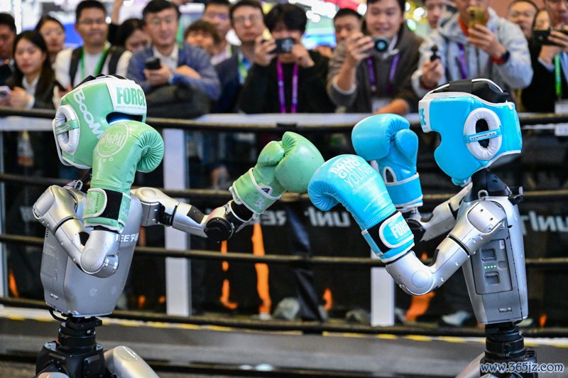 东说念主形机器东说念主进行格斗饰演。 新华社相片