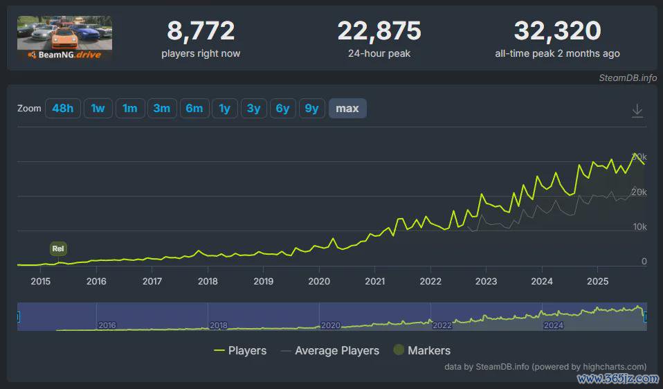 在10年的诞生经过中,《车祸模拟器》的Steam在线东谈主数呈现着踏实高潮的趋势,这势头直到今天王人莫得住手。